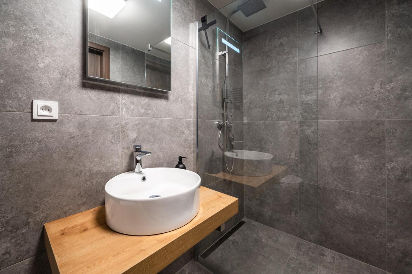 Apartmán s výhledem do zahrady. Boasting a private entrance, this air-conditioned apartment comes with 1 living room, 1 separate bedroom and 1 bathroom with a walk-in shower and a hairdryer. The well-fitted kitchenette features a stovetop, a refrigerator, a dishwasher and kitchenware. The unit has a tea and coffee maker, garden views, a terrace and winechampagne is available for guests. The unit has 2 beds. ;